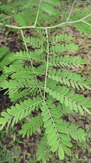 Daunnya sendiri merupakan daun majemuk yang mempunyai bentuk meyirip genap serta ganda dua dengan 4-12 pasang anak daun yang bentuknya bulat telur sungsang, berujung bulat, pangkal menyempit, tepi rata, dan permukaan atas berwarna hijau, sedang permukaan bawahnya berwarna hijau kebiruan dengan panjang 1-3,5 cm dan lebar 0,5-1,5 cm.dan pada malam hari daunnya akan menguncup.permukaan daun halus,tepi daun agak melengkung.