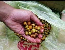 Buah dari tumbuhan palem berbentuk bulat lonjong dengan warna buah hijau untuk yang muda dan merah ke orenan untuk yang sudah matang.