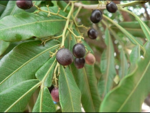 Buah tanaman ini berukuran sangat kecil, pada tiap buah umumnya berisi satu biji. Buah termasuk tipe buah batu berbentuk bulat memanjang berukuran lebar sekitar 0,6 – 0,8 cm dan panjang sekitar 0,9 – 1 cm dengan warna ungu kehitaman dan mengkilat.